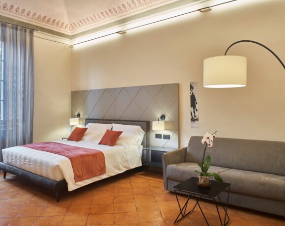 - Camera Deluxe – soffitto affrescato, spazi ampi e materiali pregiati